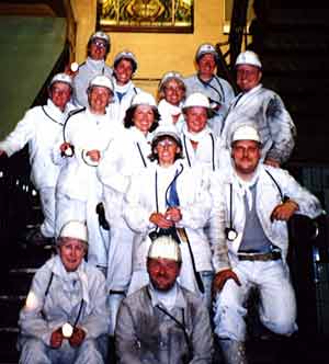 Hier konnte man sich ein Bild über die Arbeit der Bergleute machen, die trotz modernster Technik außerordentlich anstrengend ist. In den Stollen herrschen Temperaturen von bis zu 45 Grad. Hinzu kommt noch der Lärm der Schrämm-Maschinen und des ständig ratternden Förderbandes, das die abgebaute Kohle ans Tageslicht befördert. Nach zwei Stunden Hitze, Staub und dem 2 km langen Fußmarsch in der ungewohnten Bergmannsausrüstung ging es wieder ans Tageslicht. Die Frage, warum keine Frauen in der Grube arbeiten, hatte sich nach diesem Untertage-Erlebnis selbst beantwortet. Anschließend sass man noch in der sogenannten Kaue, dem Dusch- und Umkleidebereich der Bergleute, bei einem Imbiss und kühlen Getränken zusammen. Hier wurde mit den Bergwerksführern noch angeregt über die Zukunft des deutschen Steinkohlebergbaus diskutiert.