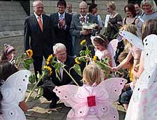 Begleitet von Kindern des Ihmerter Kindergartens "Sternenburg" bat Hemers Bürgermeister Michael Esken den Ministerpräsidenten Dr. Jürgen Rüttgers die Übernahme der Schirmherrschaft der Landesgartenschau 2010 in Hemer zu übernehmen. Der Ministerpräsident sagte die Schirmherrschaft bereits jetzt zu.